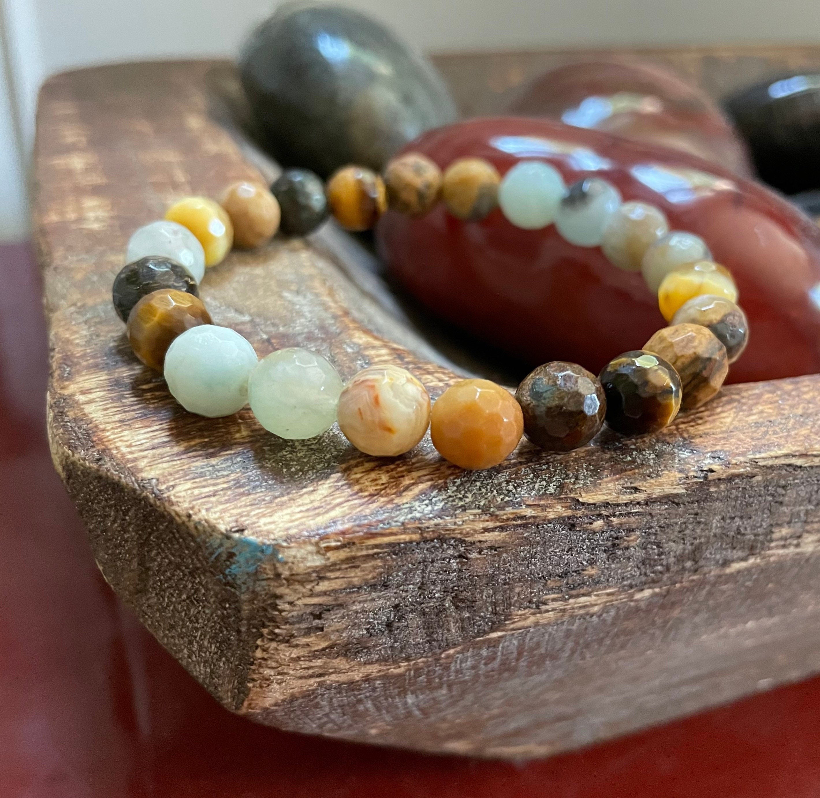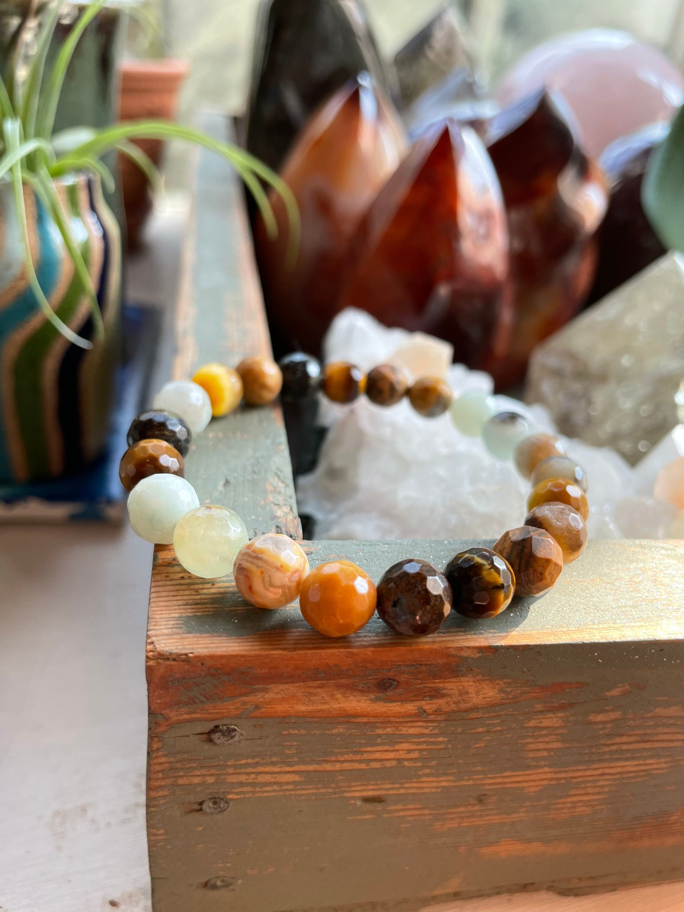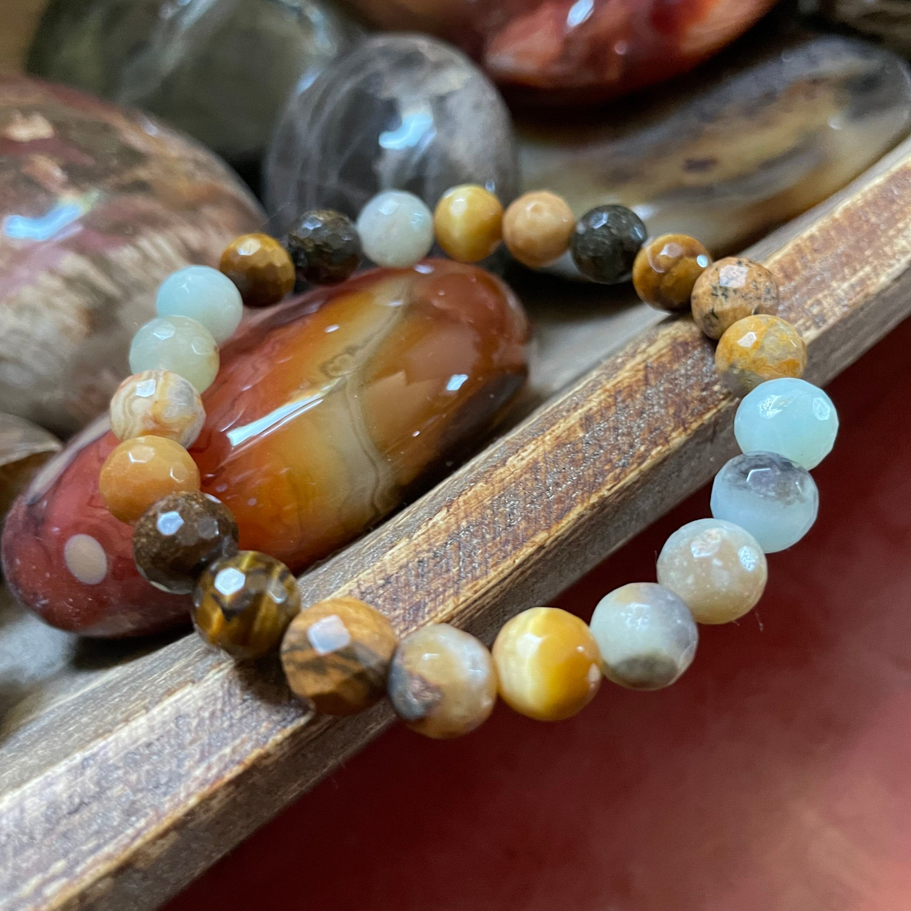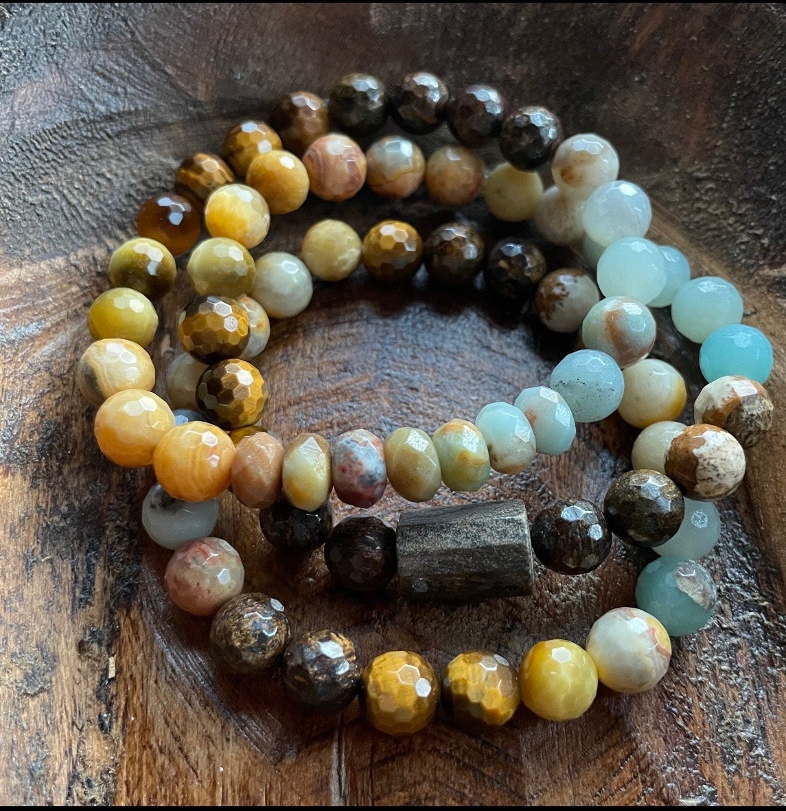 Bronzite, Tiger Eye, Golden Tiger Eye, Picture Jasper, Amazonite, Earthy Amazonite + Crazy Lace Agate