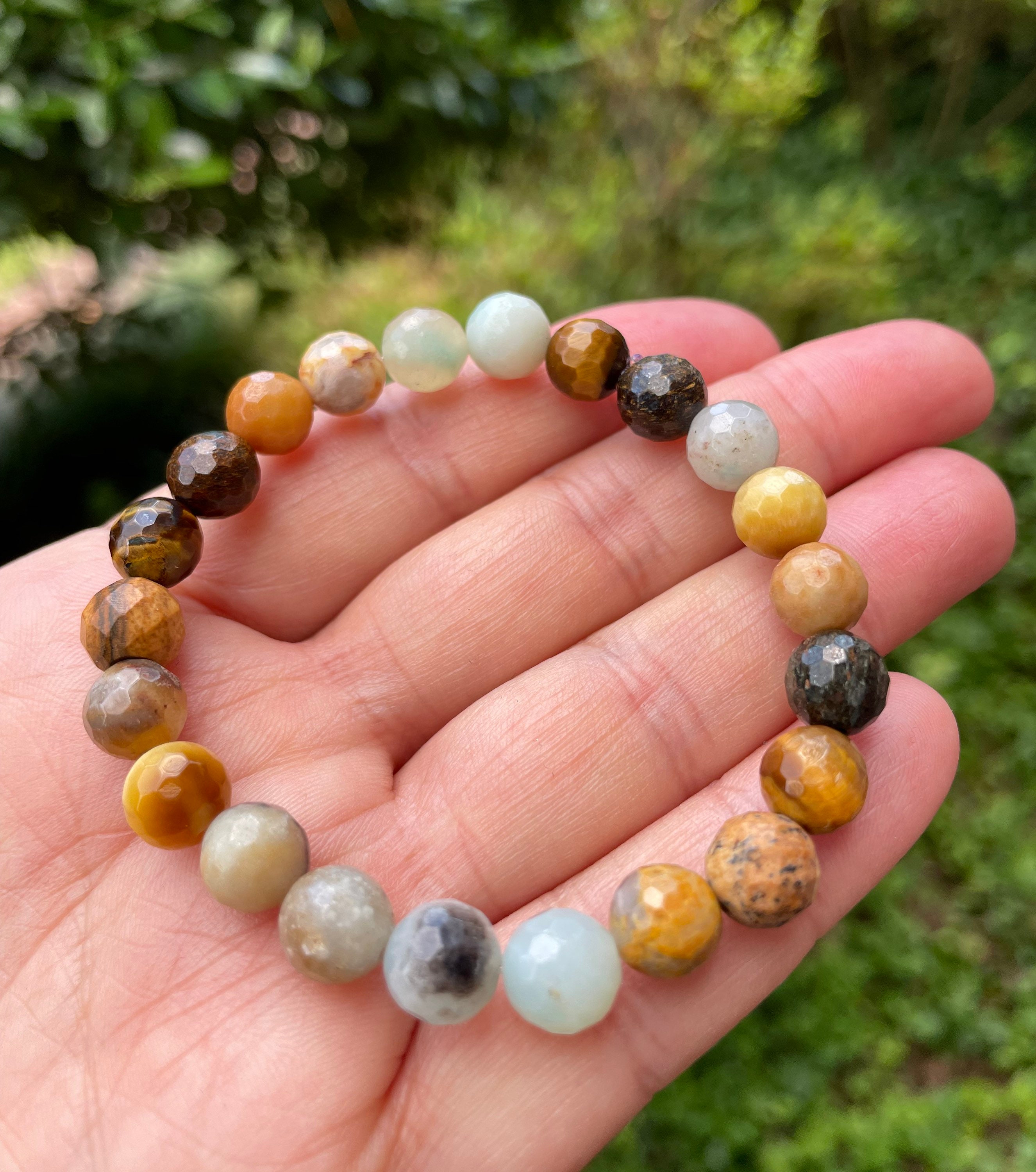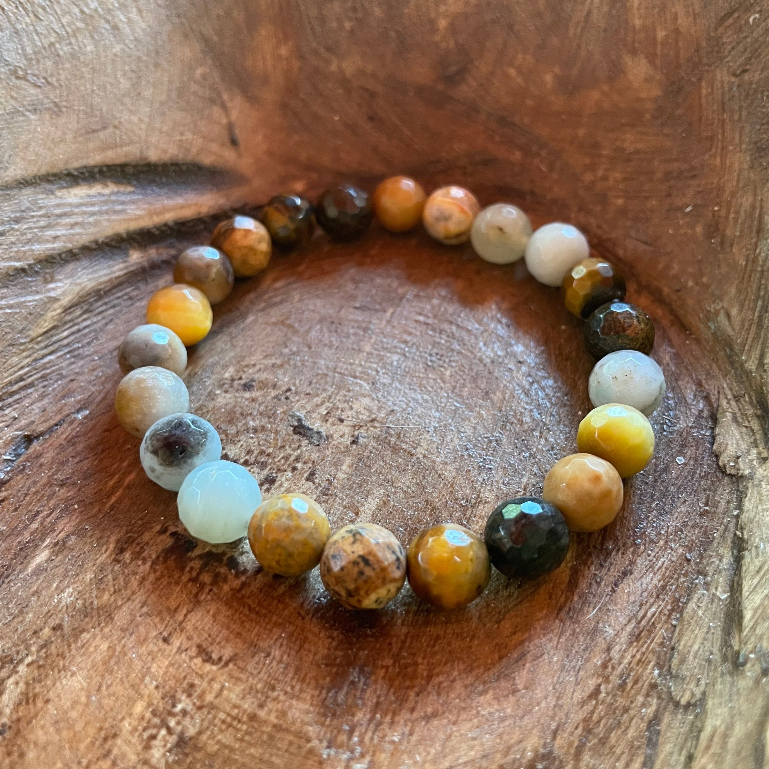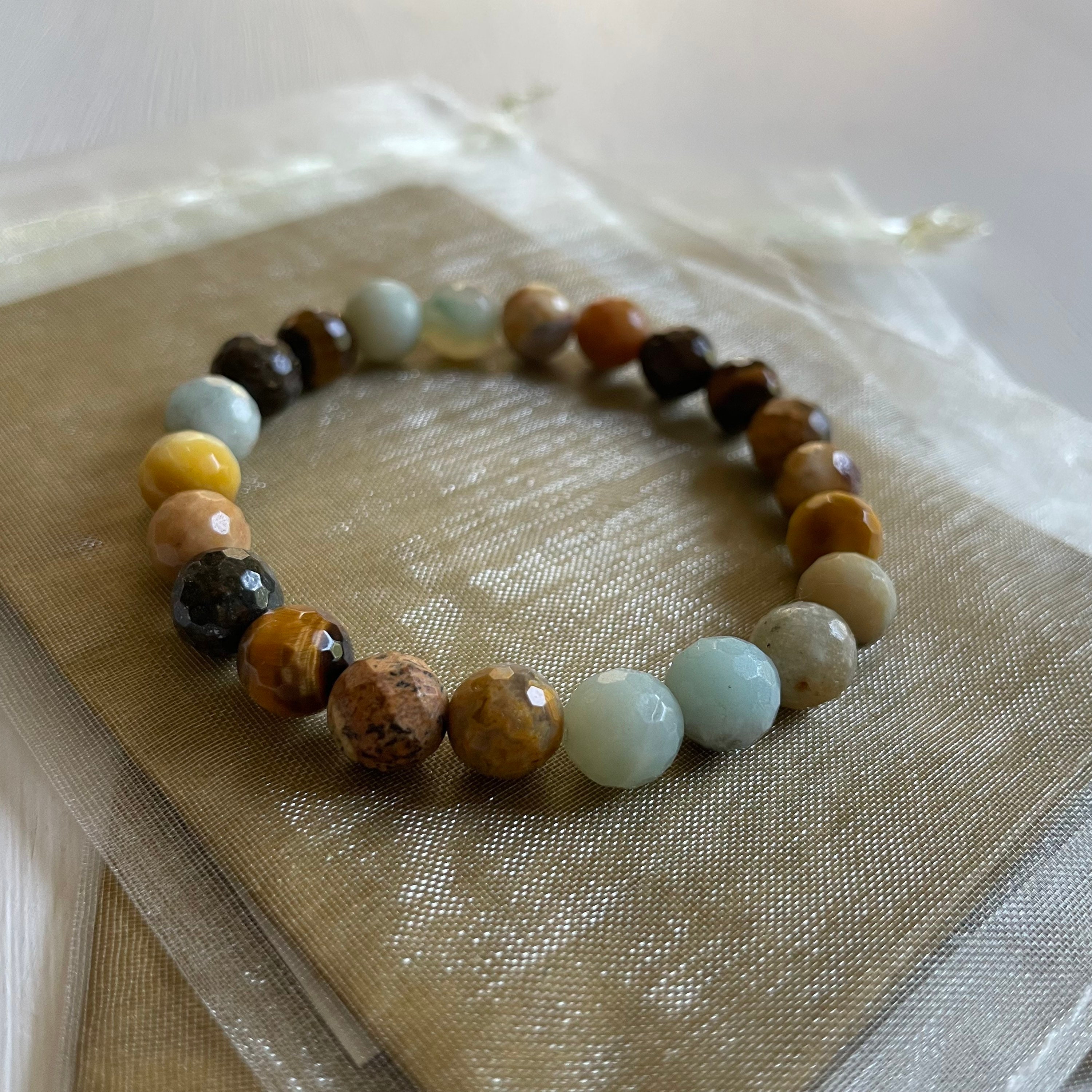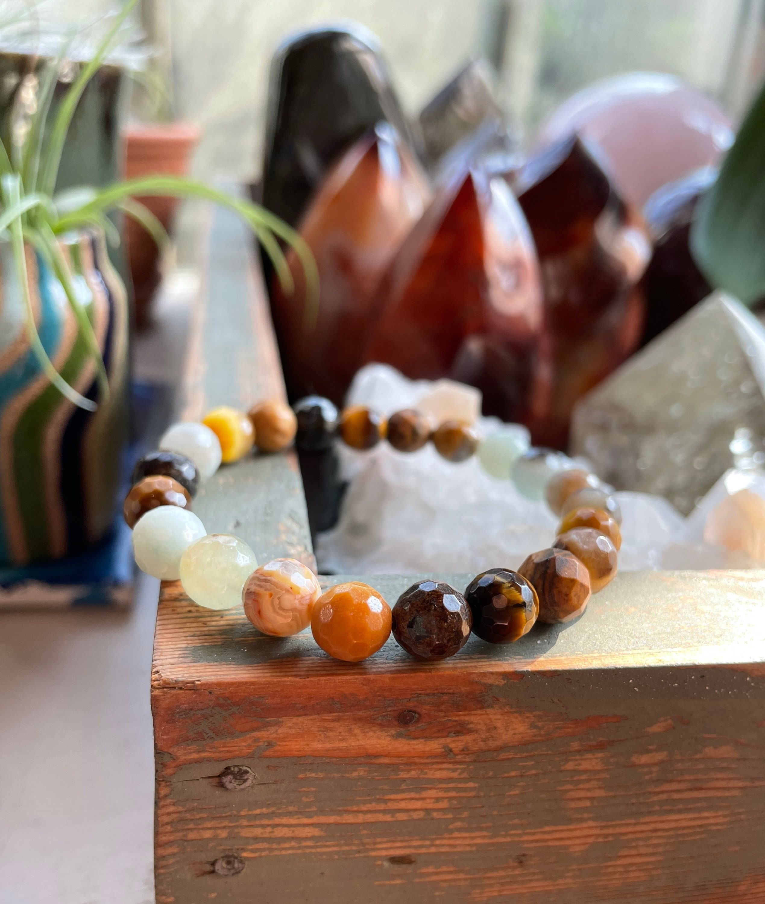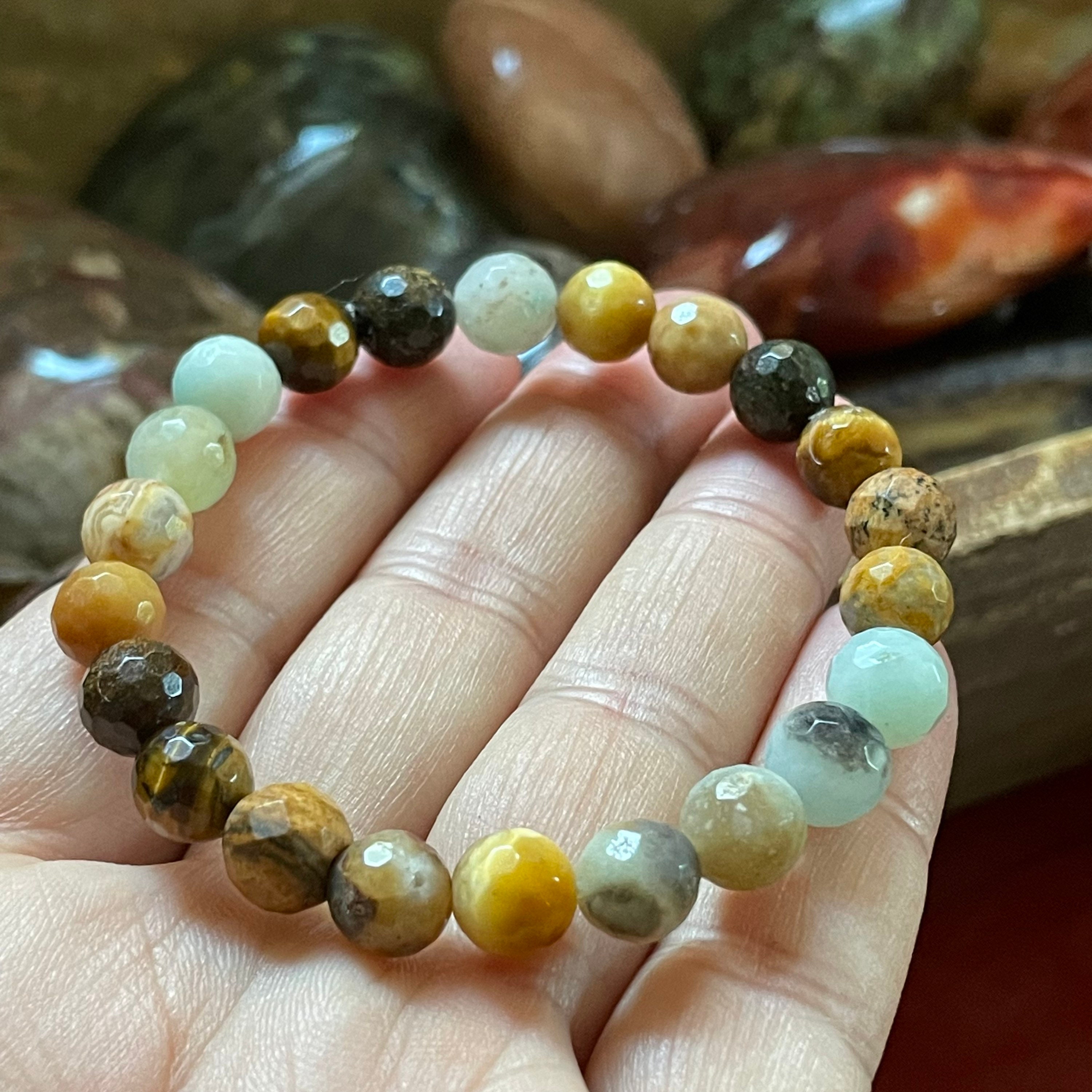 Bronzite, Tiger Eye, Golden Tiger Eye, Picture Jasper, Amazonite, Earthy Amazonite + Crazy Lace Agate