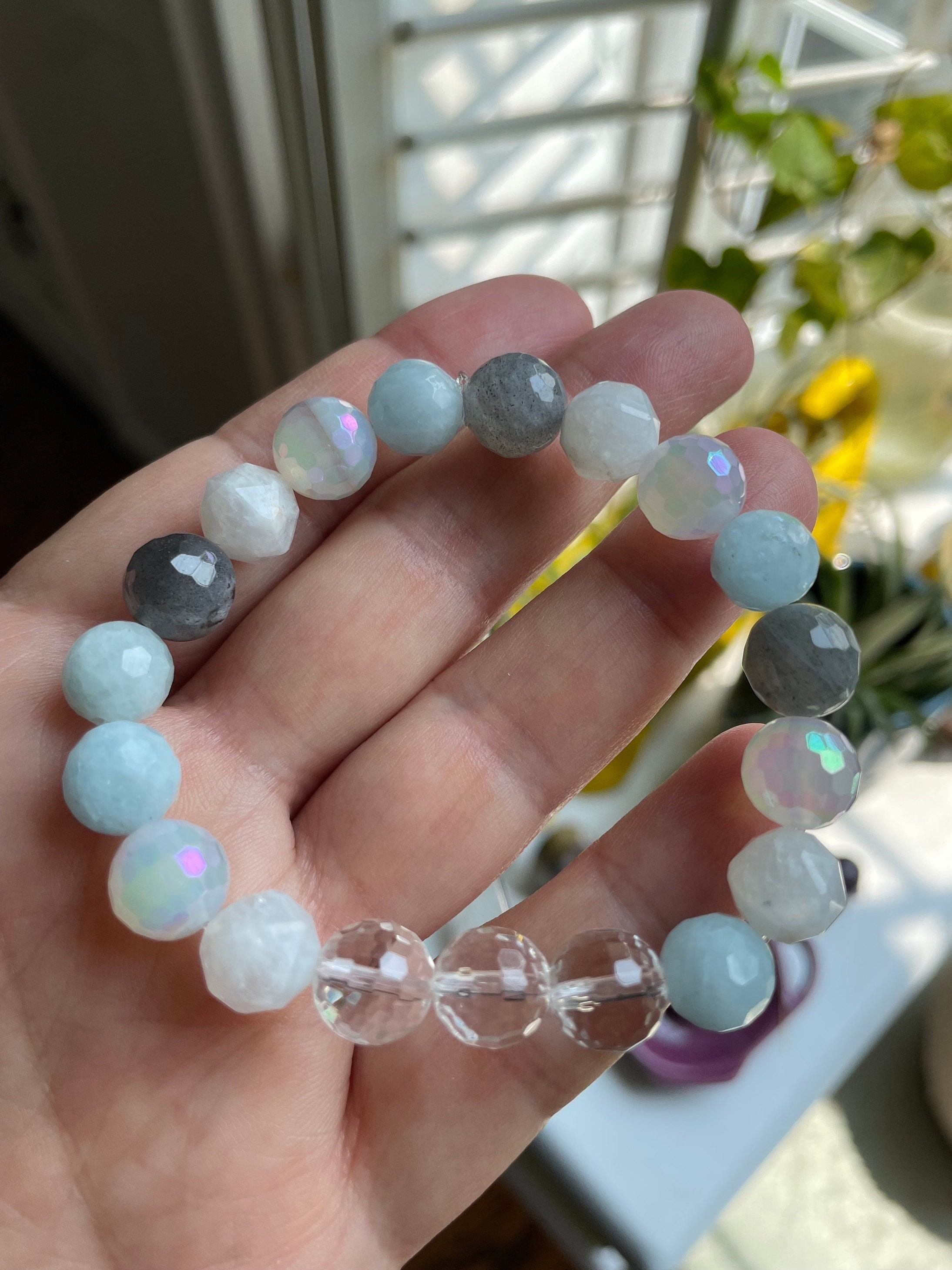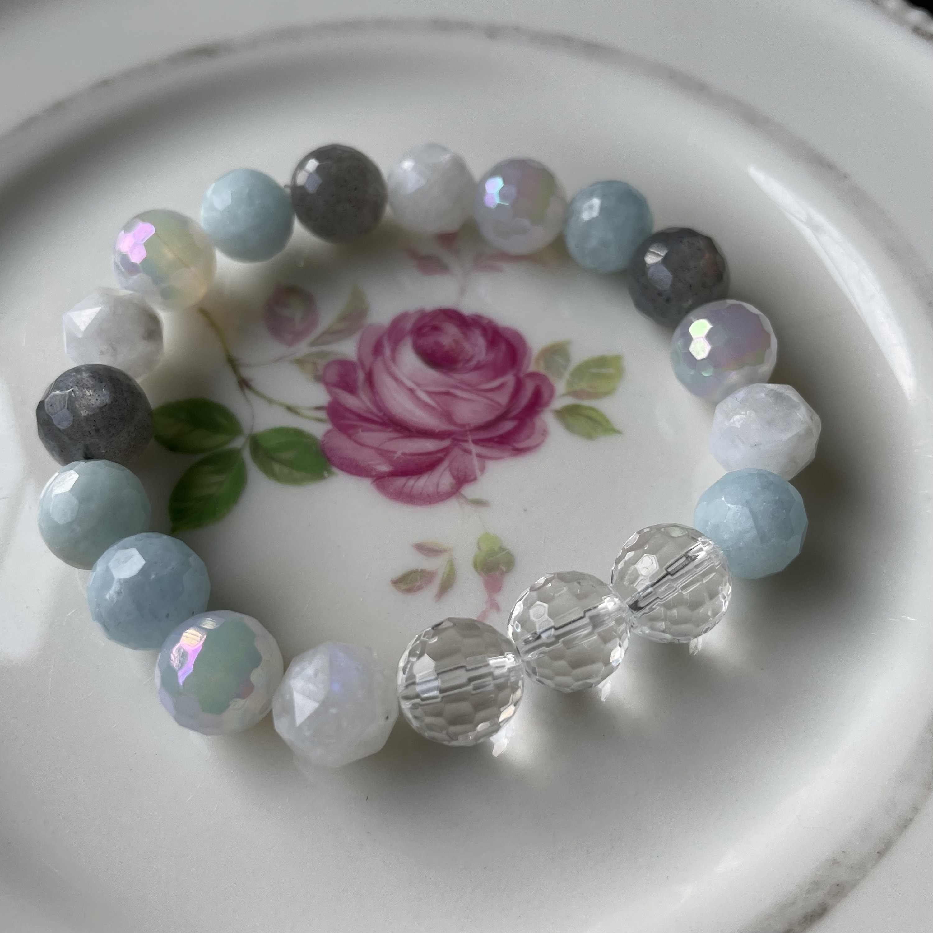 Aquamarine, Labradorite, Mystic Mermaid Rainbow Agate, Moonstone + Quartz Crystal