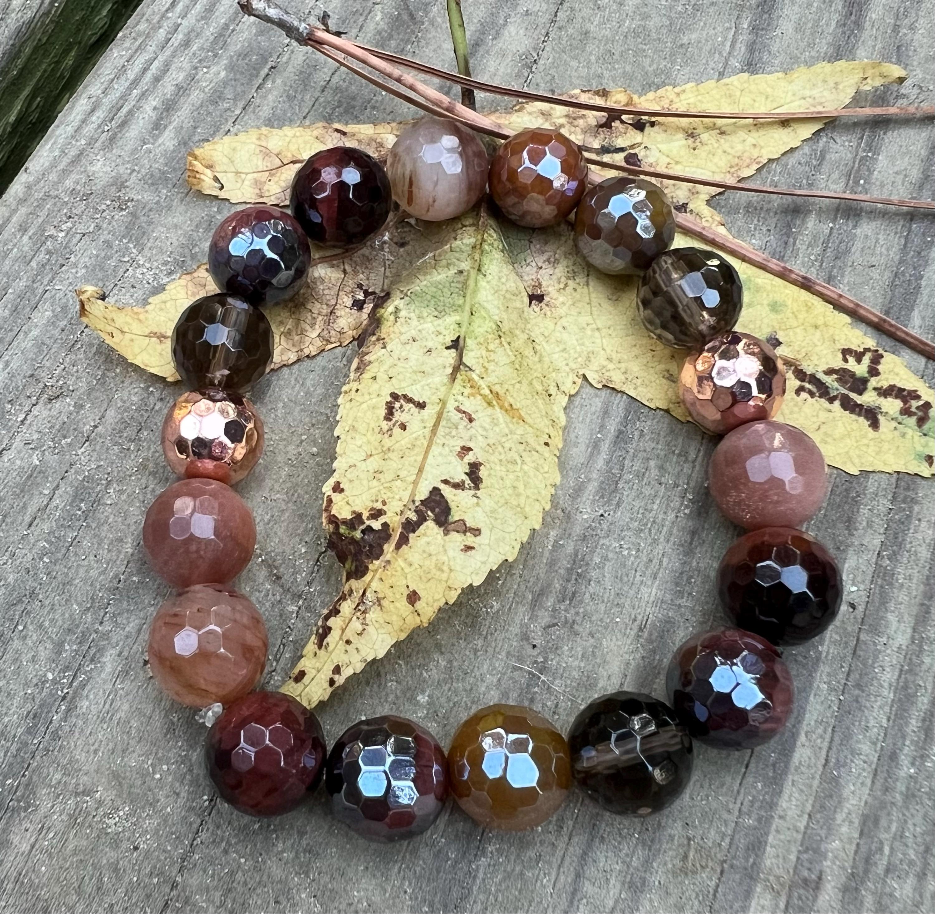 Chunky Smoky Quartz, Rose Gold Hematite, Golden Sunstone, Red Tiger Eye, Mystic Red Tiger Eye, Red Moss Agate + Mystic Autumn Harvest Agate