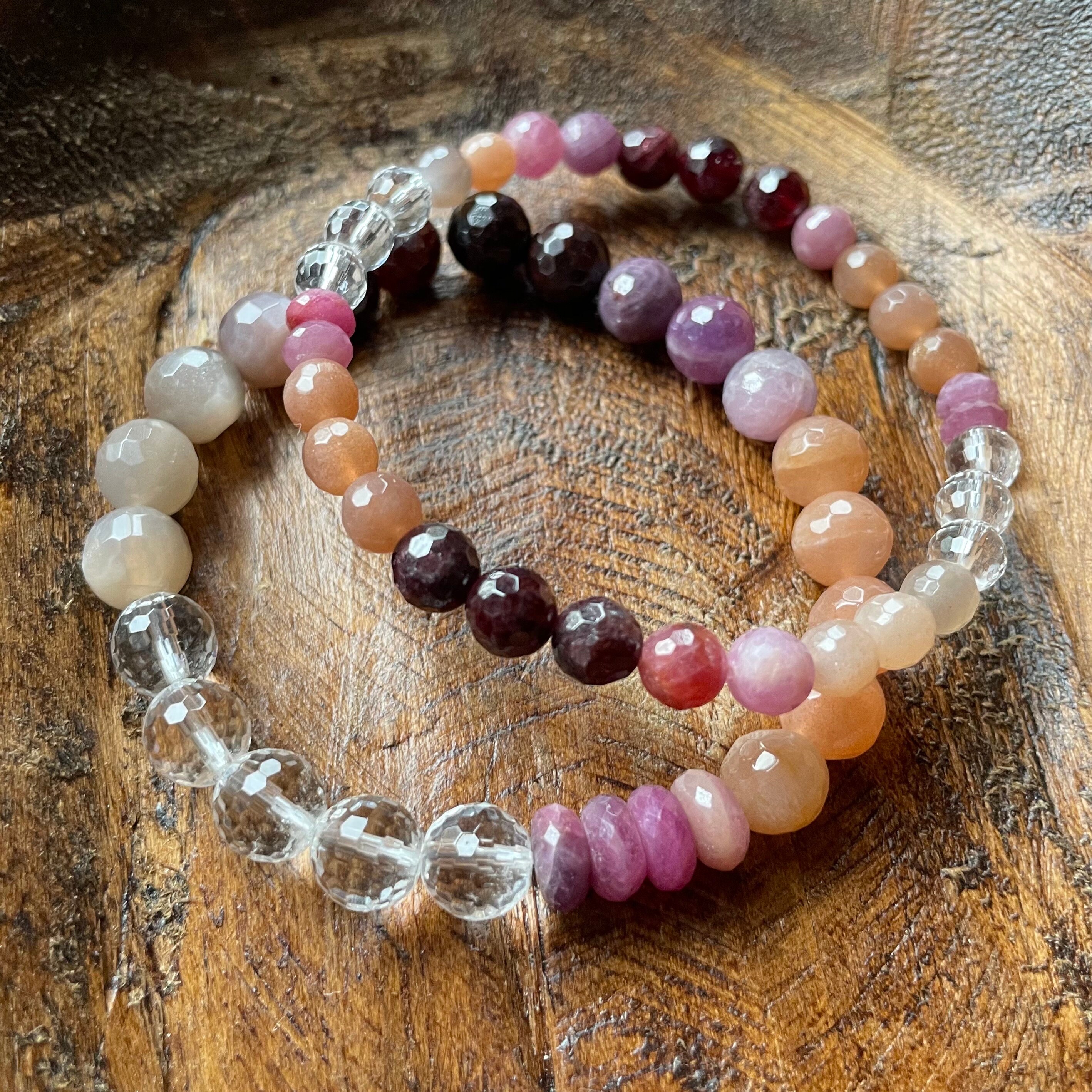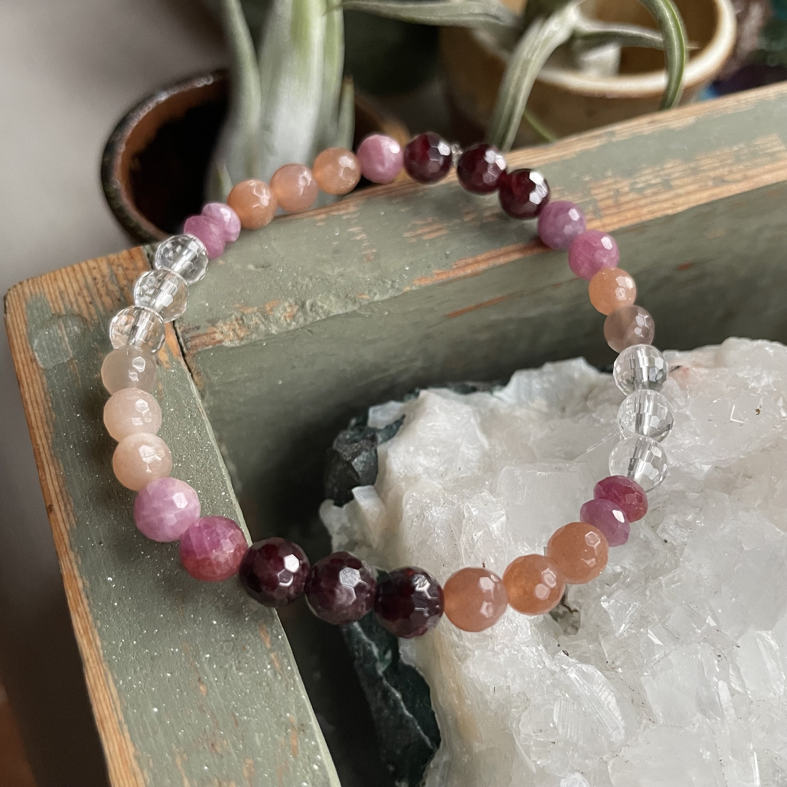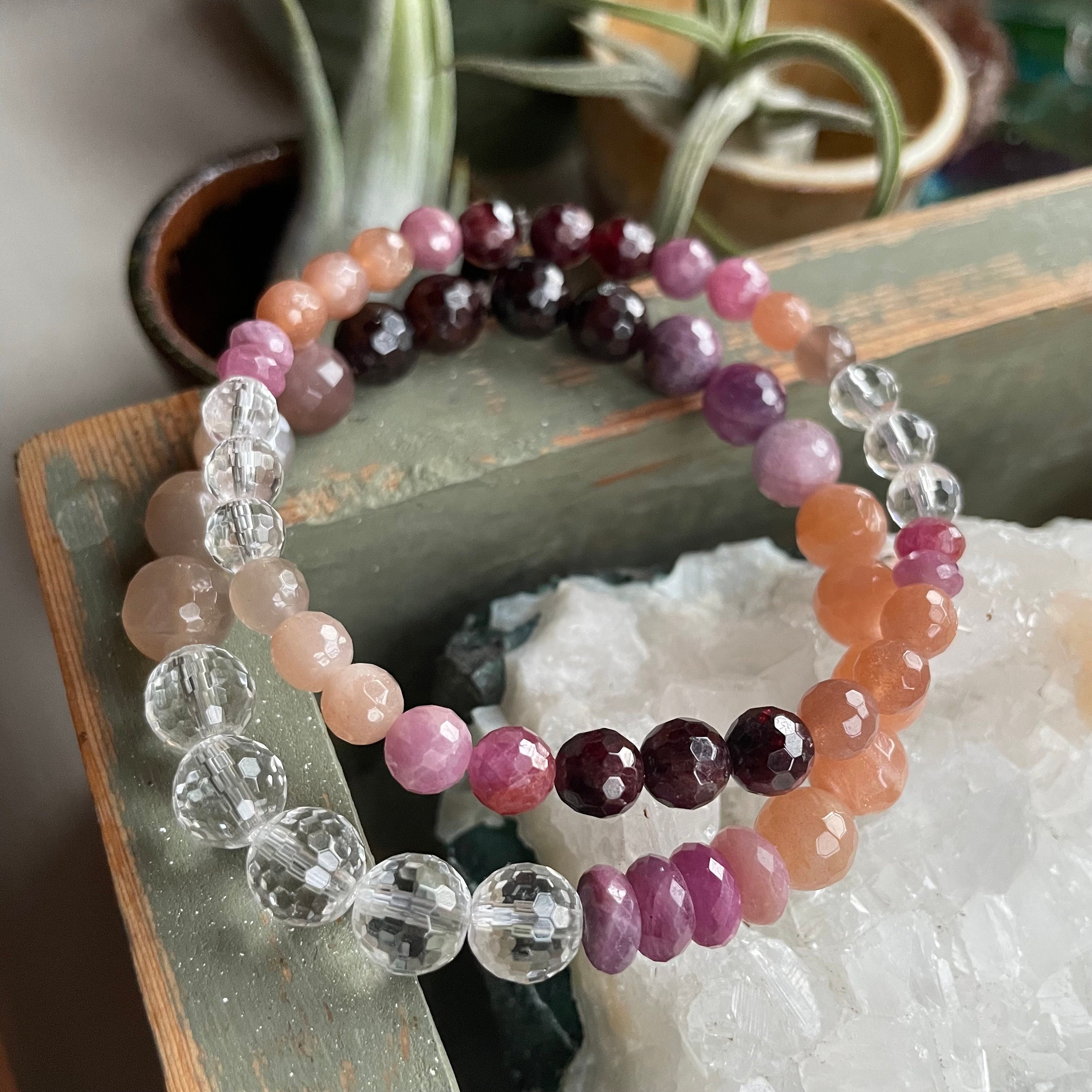 Garnet, Sunstone, Moonstone, Quartz, + Ruby