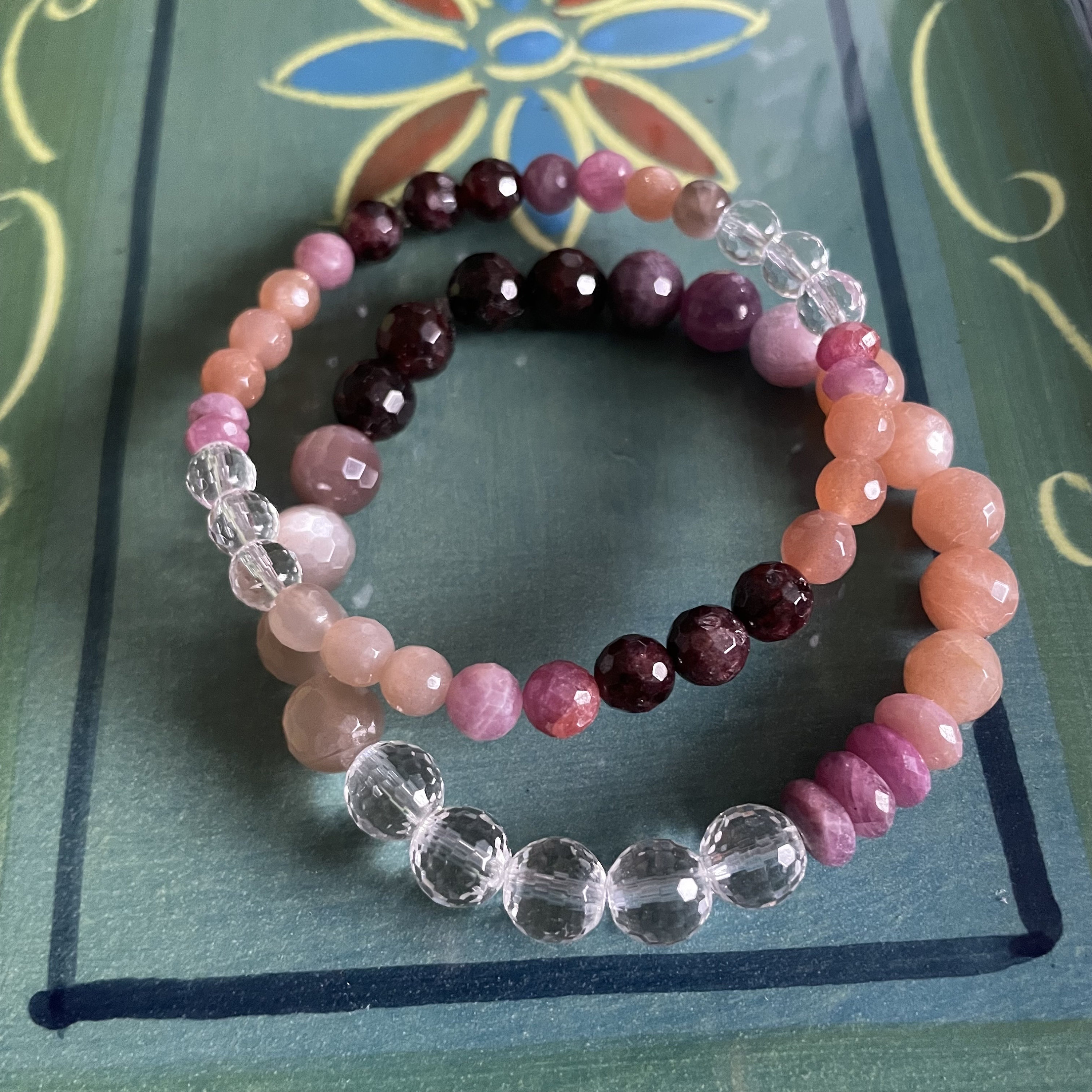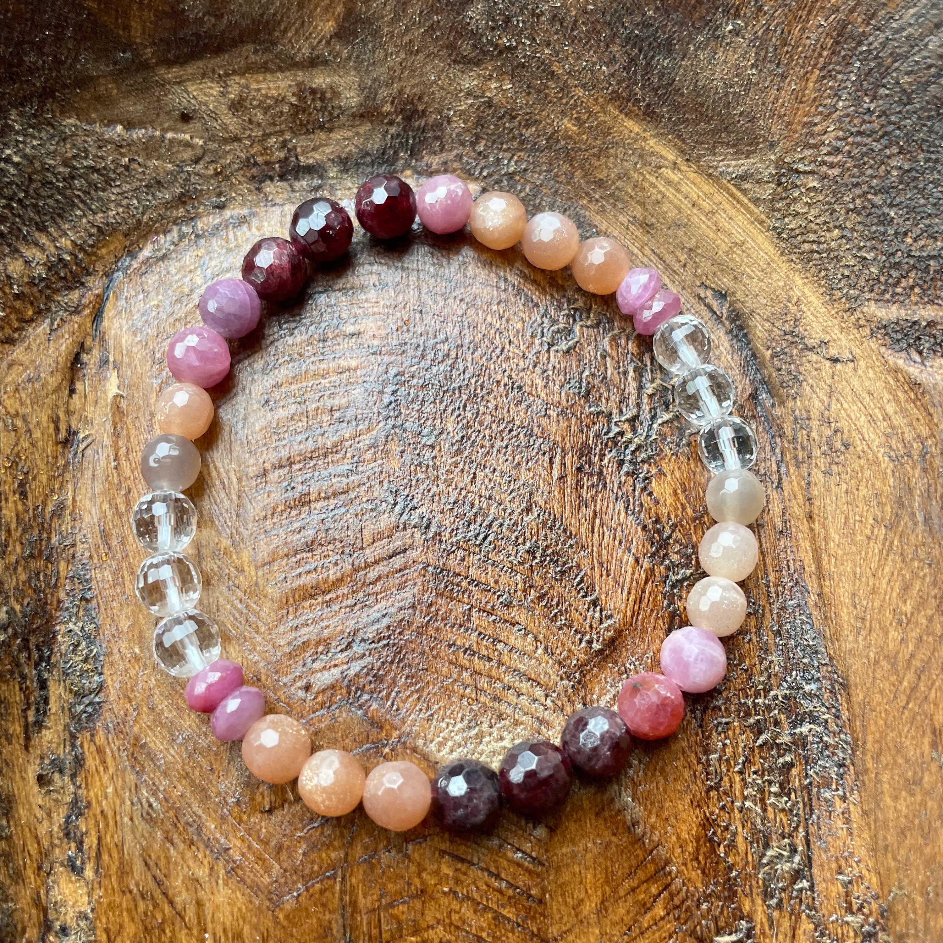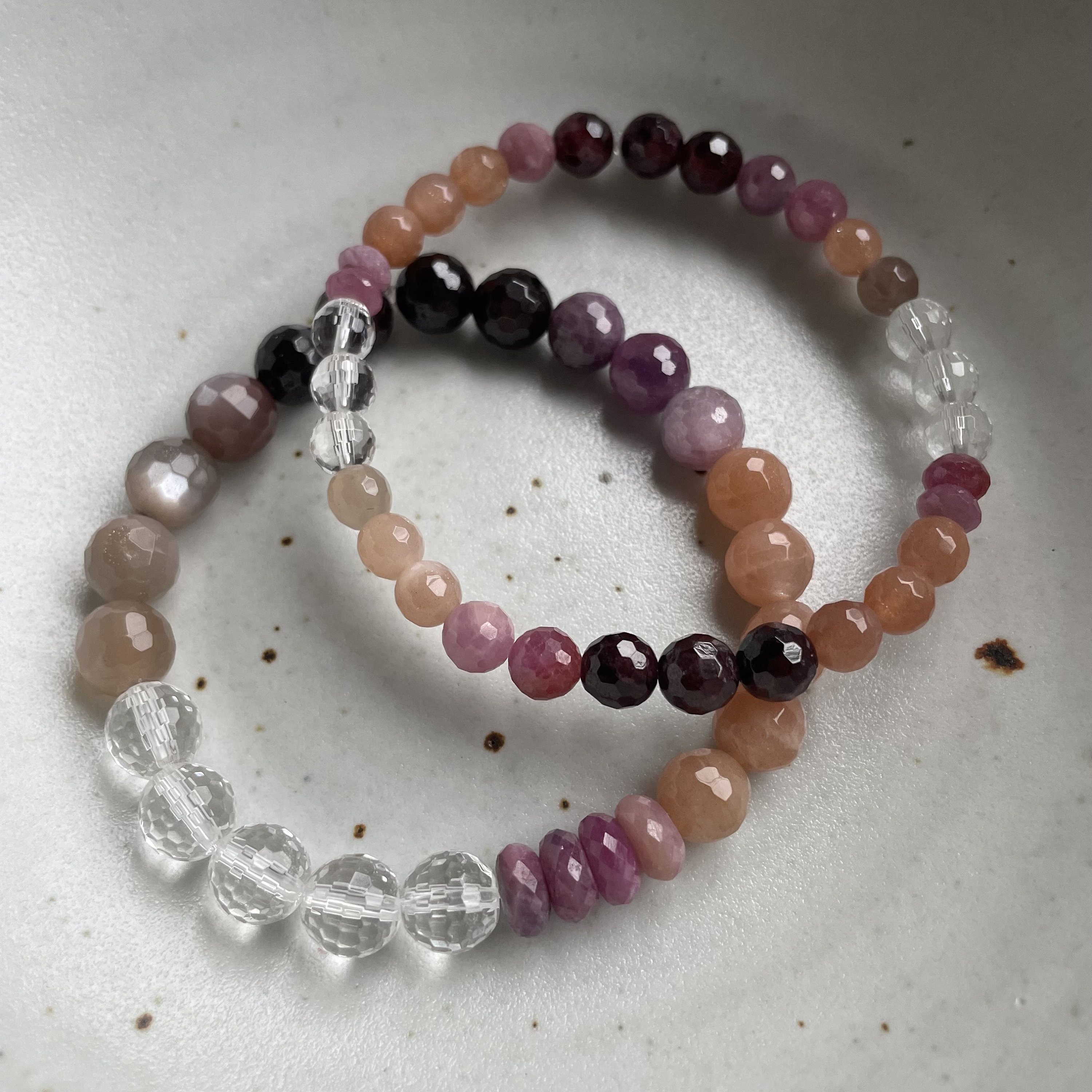 Garnet, Sunstone, Moonstone, Quartz, + Ruby
