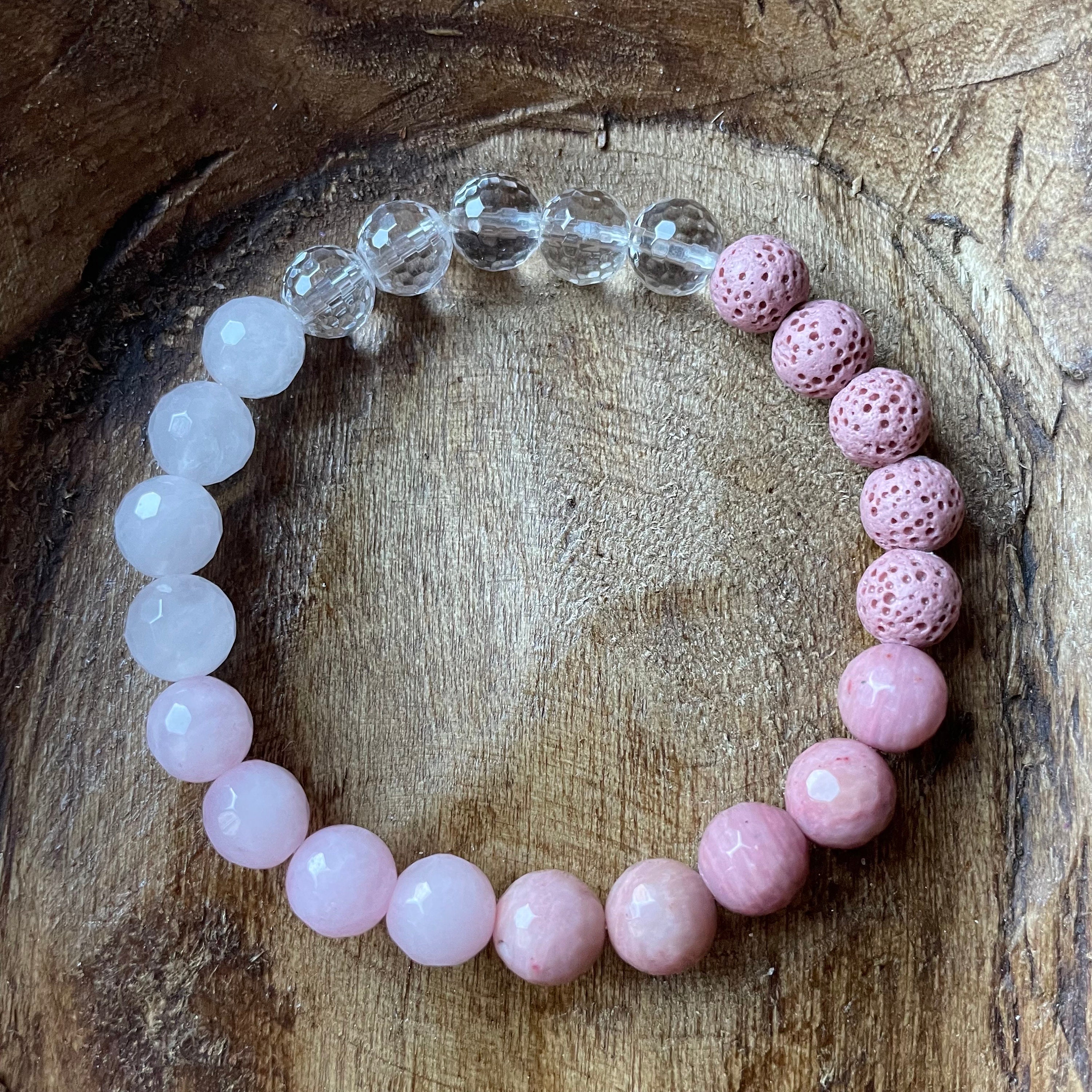 Quartz Crystal, Lava Bead, Rhodonite, + Rose Quartz