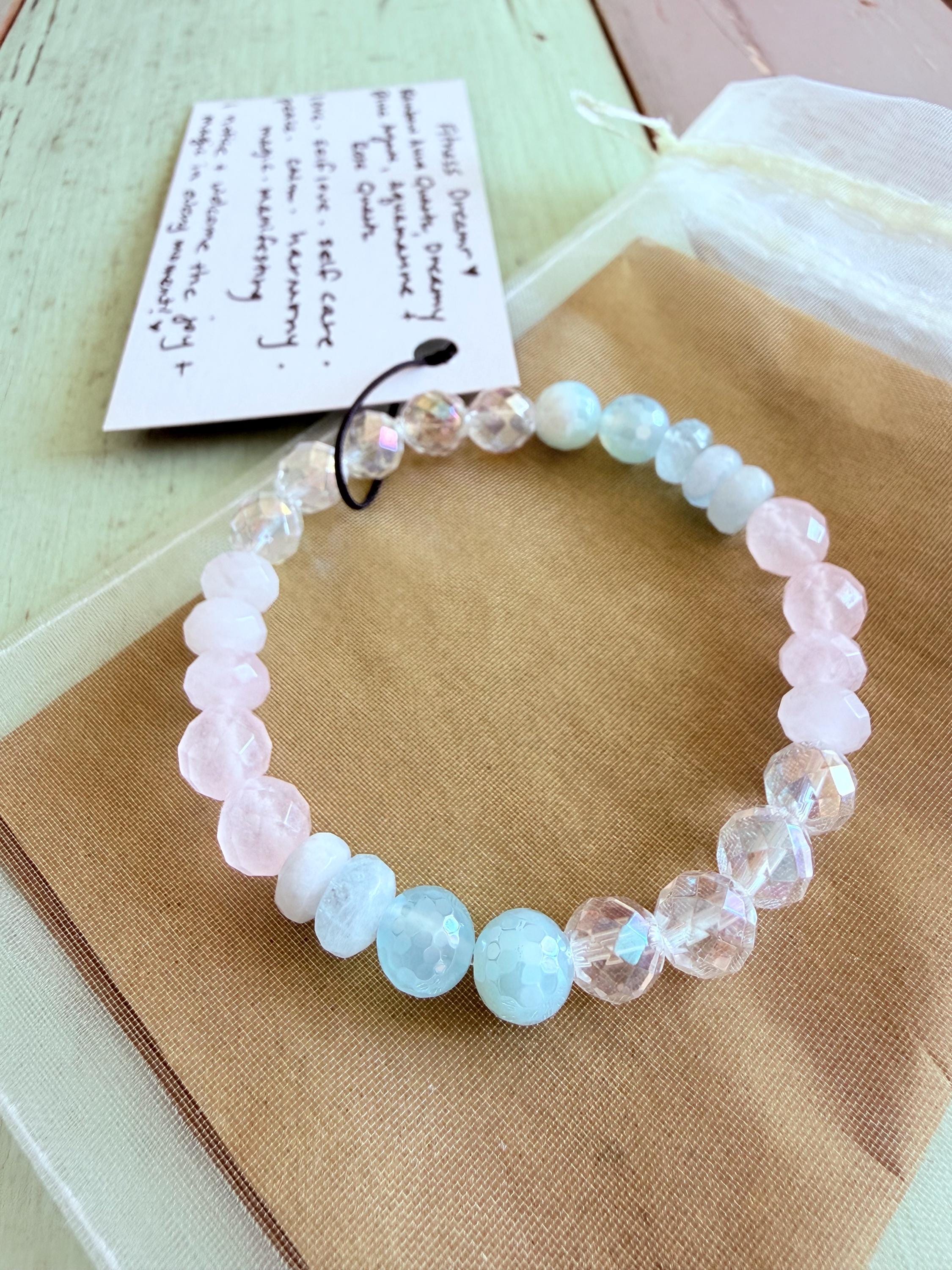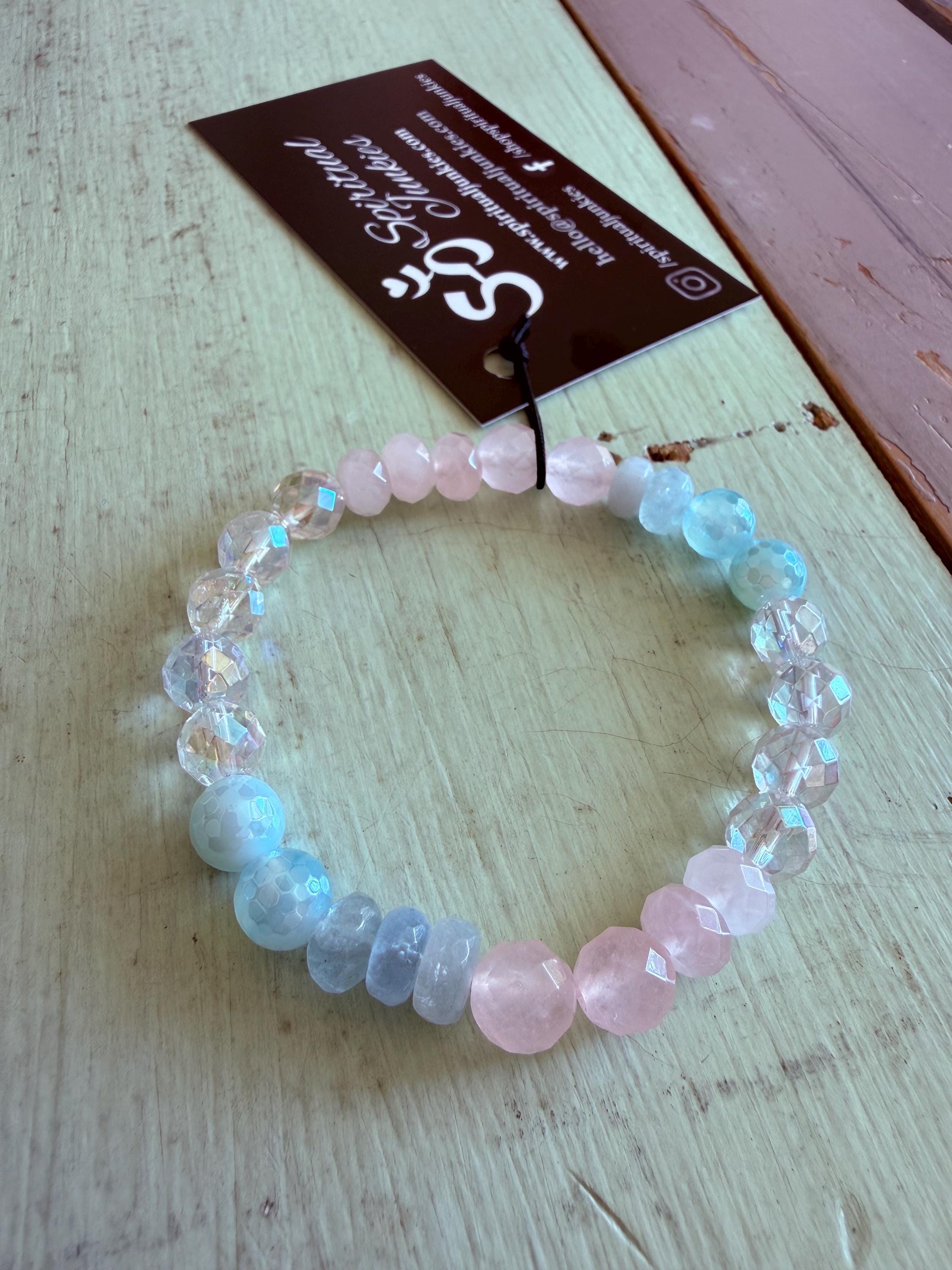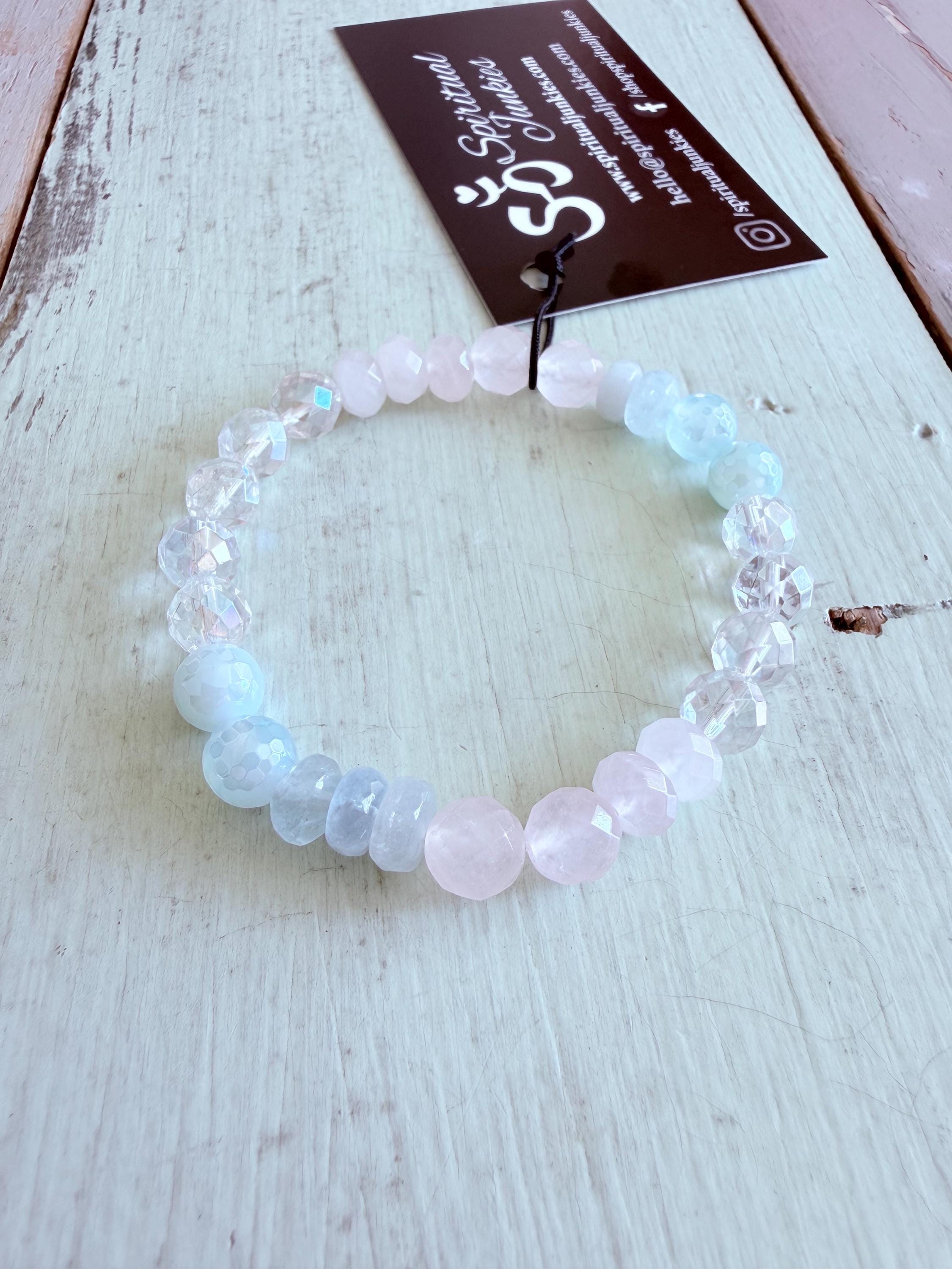 Rainbow Aura Quartz, Dreamy Blue Agate, Aquamarine, + Rose Quartz
